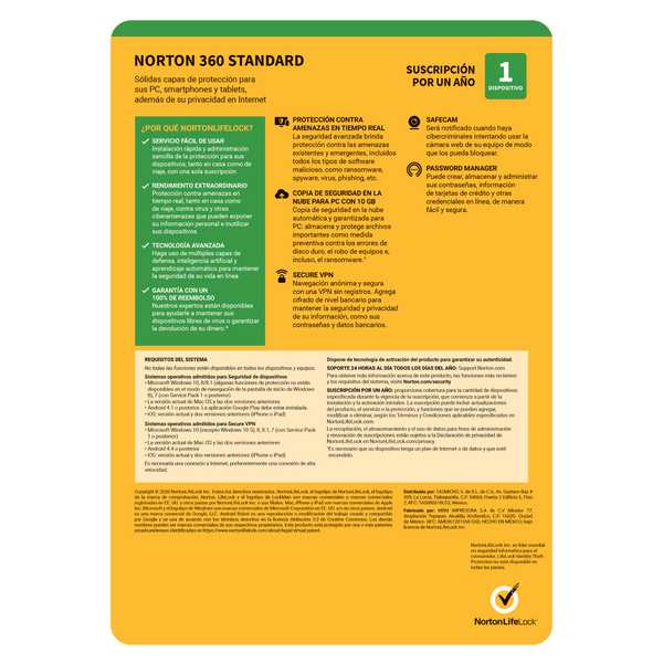 Varias capas de protección en una solución única e integral: Seguridad para todos tus dispositivos, 100% Promesa de Protección contra Virus, VPN, copia de seguridad en la nube, control parental y más...